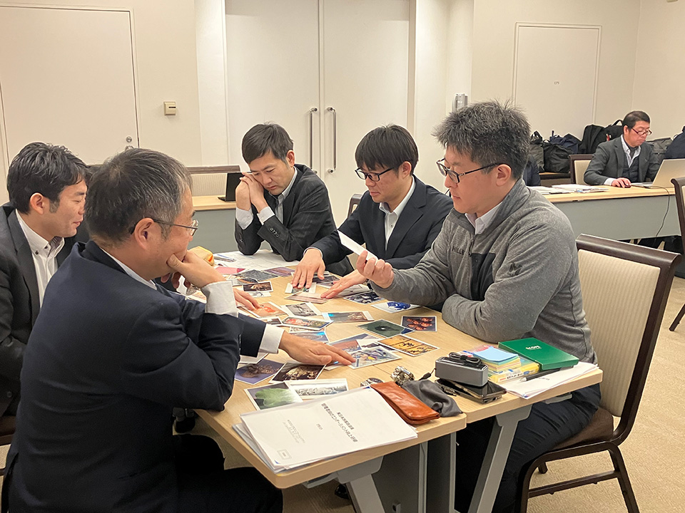 また、2日間を通して研修全体が一貫したストーリーで構成されており、被災地の現場での経験が翌日の学びへと有機的に繋がっていた点も高く評価できます。『過去から現在、そして将来、未来』という研修目的に沿って、未来のビジョンを言語化し、共有する機会は、参加者のマインドセットに良い影響を与え、普段の業務ではなかなか考えることのない目先の仕事以外のことを考える場となりました。アートカードを使った『将来の組織をどうしたいか』というテーマでの表現では、参加者が的を外さずに意見を述べていたのが印象的で、私自身も良い経験になりました。