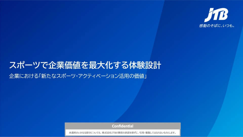 本資料では、スポーツスポンサーシップやアクティベーションの最新動向、企業が抱える課題、JTBならではのソリューション設計力や伴走型支援体制、実際の活用事例まで、幅広くご紹介しています。