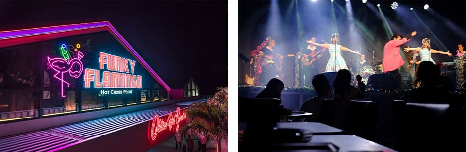 生演奏とともに“食べて・聴いて・踊って”五感で楽しめるオールディーズライブ&ダイニング「Funky Flamingo(ファンキーフラミンゴ)」でのパーティープランです。