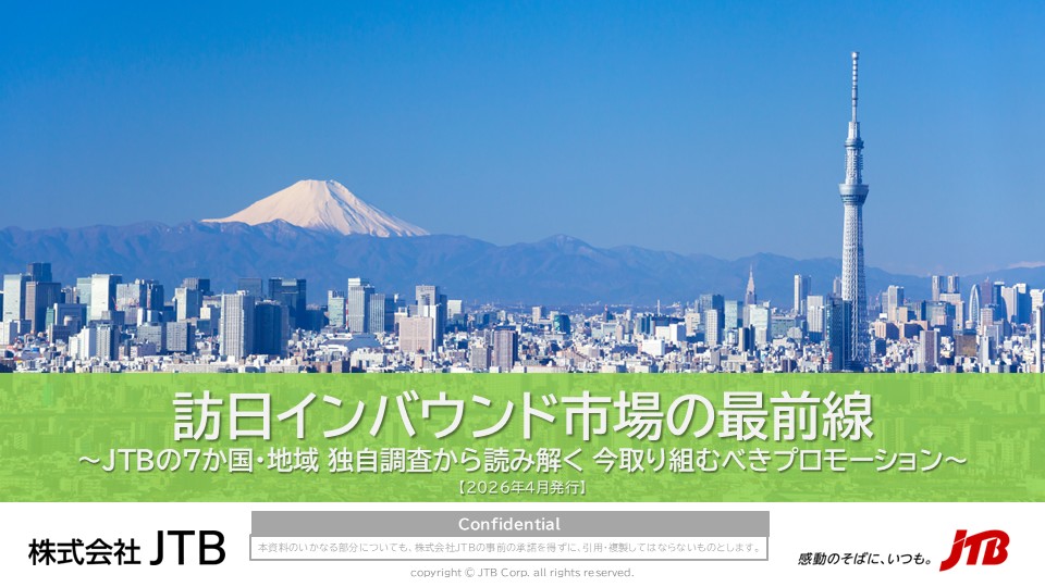 本記事では、JTBが独自で実施した7か国・地域の訪日旅行経験者を対象に実施した独自調査をもとに、2026年の訪日インバウンドトレンド予測と、施策検討に役立つプロモーションのヒントをご紹介します。 さらに詳しく解説したお役立ち資料「訪日インバウンド市場の最前線」を2026年4月版として刷新しました。インバウンド施策の検討・見直しに向けて、ぜひダウンロードしてご活用ください。
