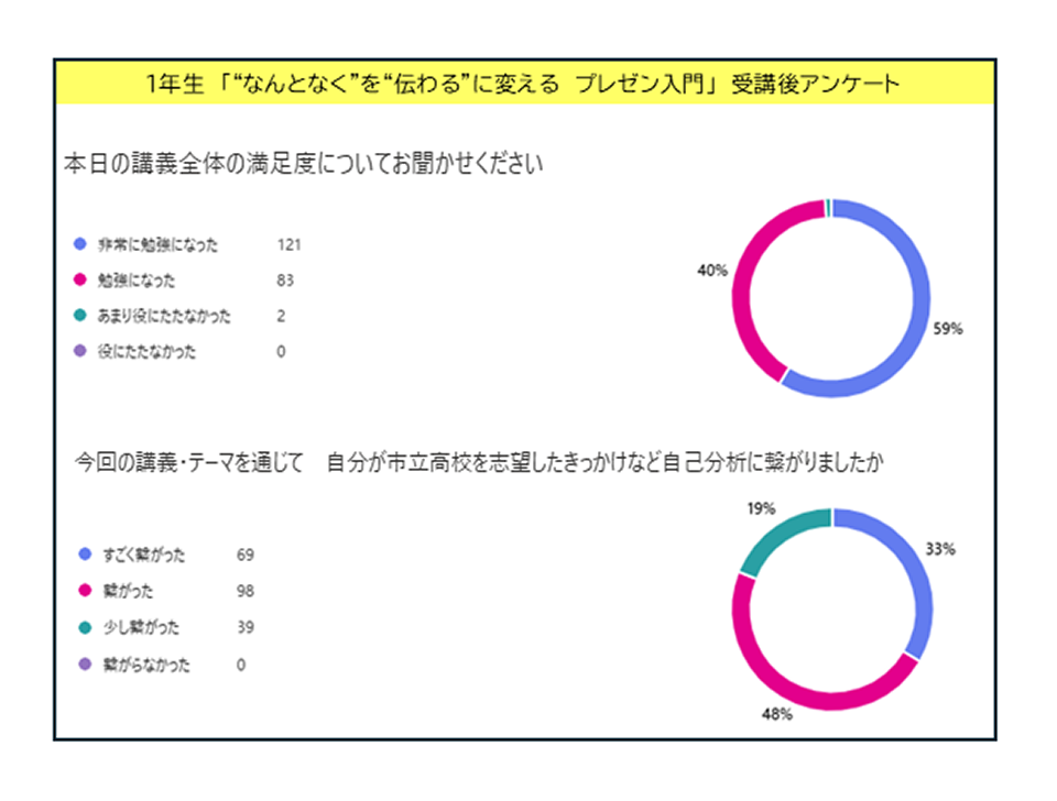各学年でプログラム実施後に、講義全体の満足度や、各学年のテーマにおける講義を実施した効果についてアンケートを実施しました。満足度については、「非常に勉強になった・勉強になった」が98%以上という結果になりました。
