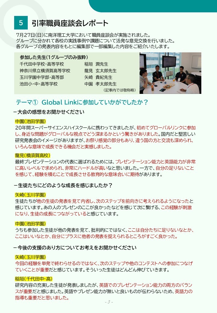 職員座談会は、Global Linkに参加した生徒の引率の先生方の意見交換の場として実施しました。